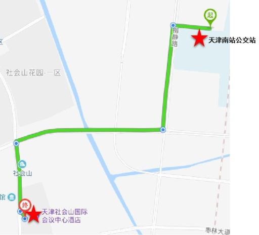 . 天津南站: (1)可乘公交 758 路、 674 路或 707 路至社会山中心站,步行 500 米到达 酒店;( 2)乘坐出租车约需 10 元。
