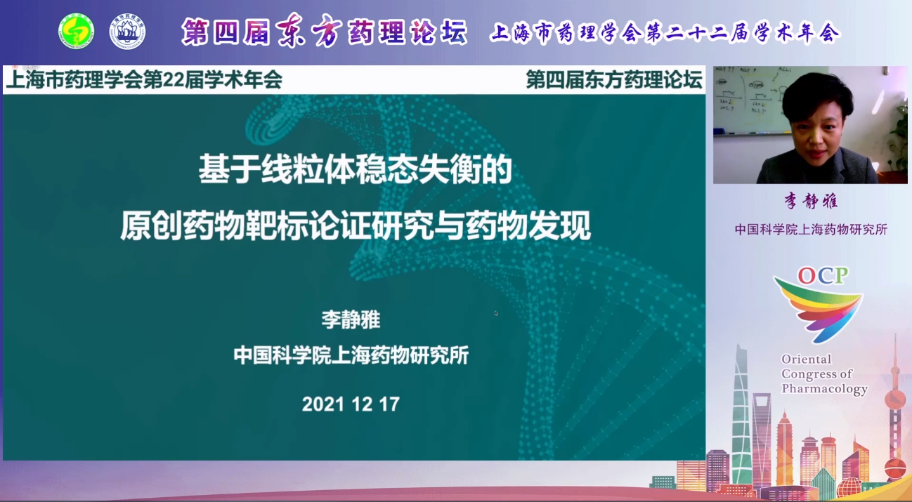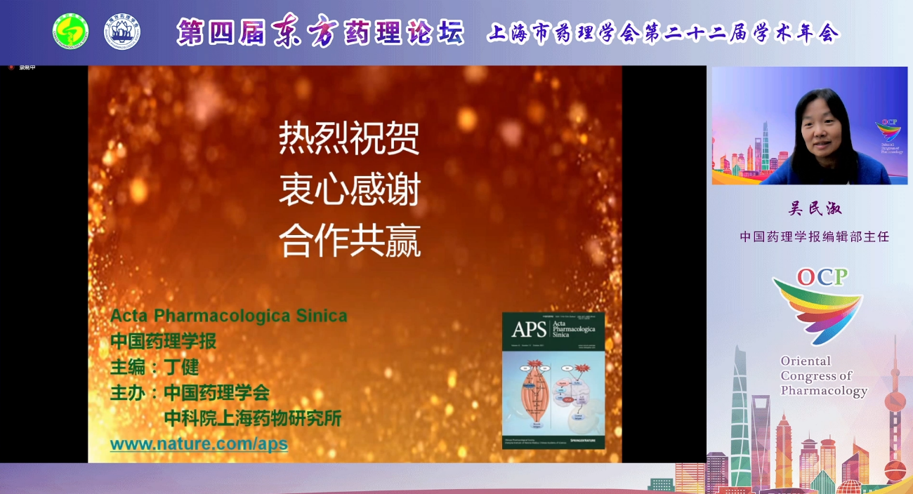 第四届东方è¯ç†è®ºå›(Oriental Congress of Pharmacology, OCP)于2021å¹´12月16日至18日在上海å¬å¼€ï¼ŒåŒæœŸä¸¾åŠžä¸Šæµ·å¸‚è¯ç†å¦ä¼šç¬¬äºŒåäºŒå±Šå¦æœ¯å¹´ä¼šã€‚主办å•ä½ä¸ºä¸å›½è¯ç†å¦ä¼šï¼Œä¸Šæµ·å¸‚è¯ç†å¦ä¼šã€‚å办å•ä½ä¸ºä¸å›½è¯ç†å¦ä¼šå¿ƒè¡€ç®¡è¯ç†ä¸“业委员会,上海市è¯ç†å¦ä¼šè¯æ•ˆå¦ä¸“业委员会ã€è¯ç‰©ä¸´åºŠè¯•验专业委员会ã€ä¸´åºŠè¯ç‰©è¯„价专业委员会ã€ä¸´åºŠè¯ç†ä¸“业委员会,ä¸å›½è¯ç†å¦æŠ¥ã€‚缪æœçŽ‰æ‹…ä»»å¤§ä¼šä¸»å¸ï¼Œå¼ 永祥ã€ä¸å¥ã€æ¨å®å³°ã€æœå† åŽã€è‹å®šå†¯ã€èƒ¡åˆšæ‹…任大会å誉主å¸ã€‚