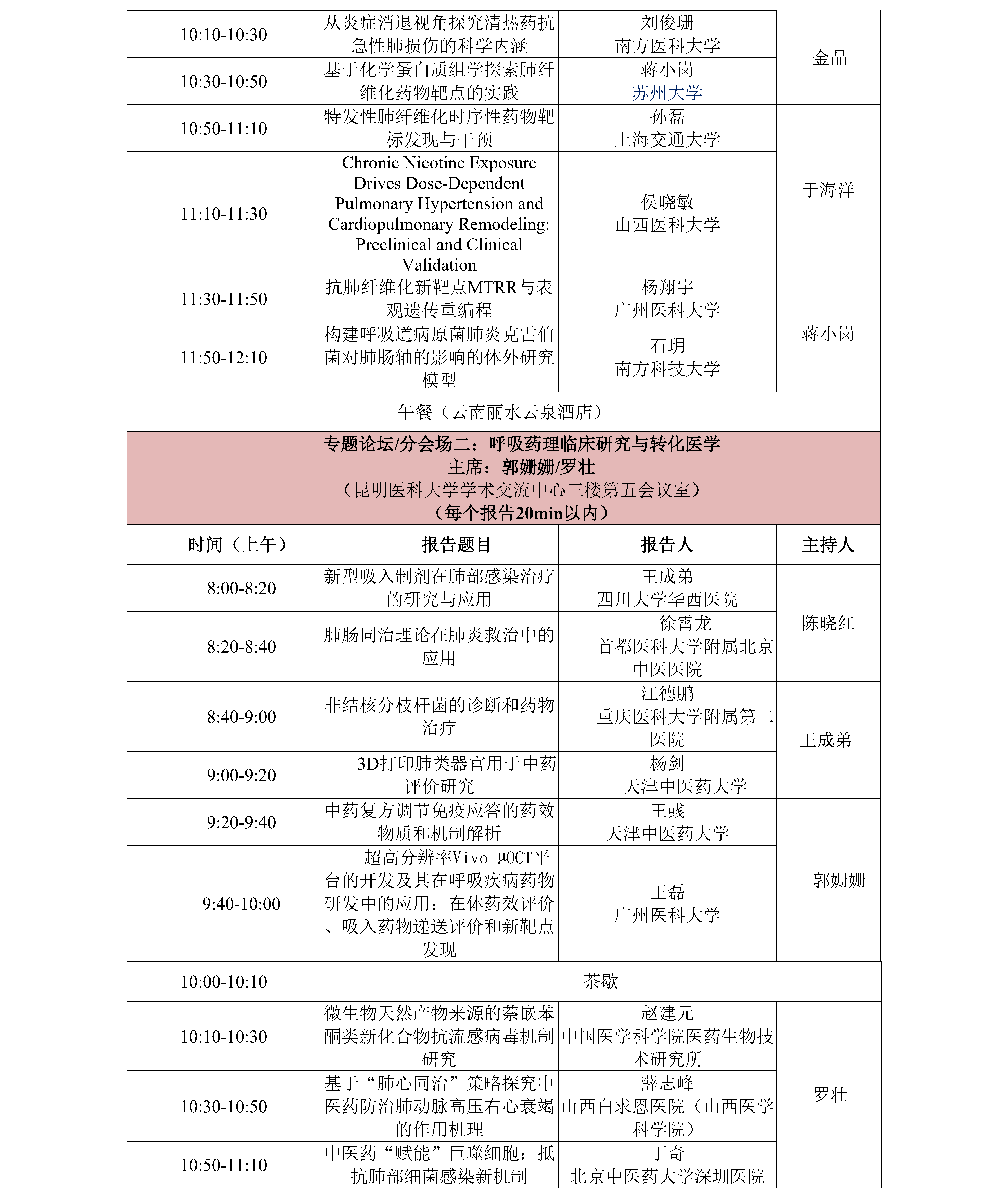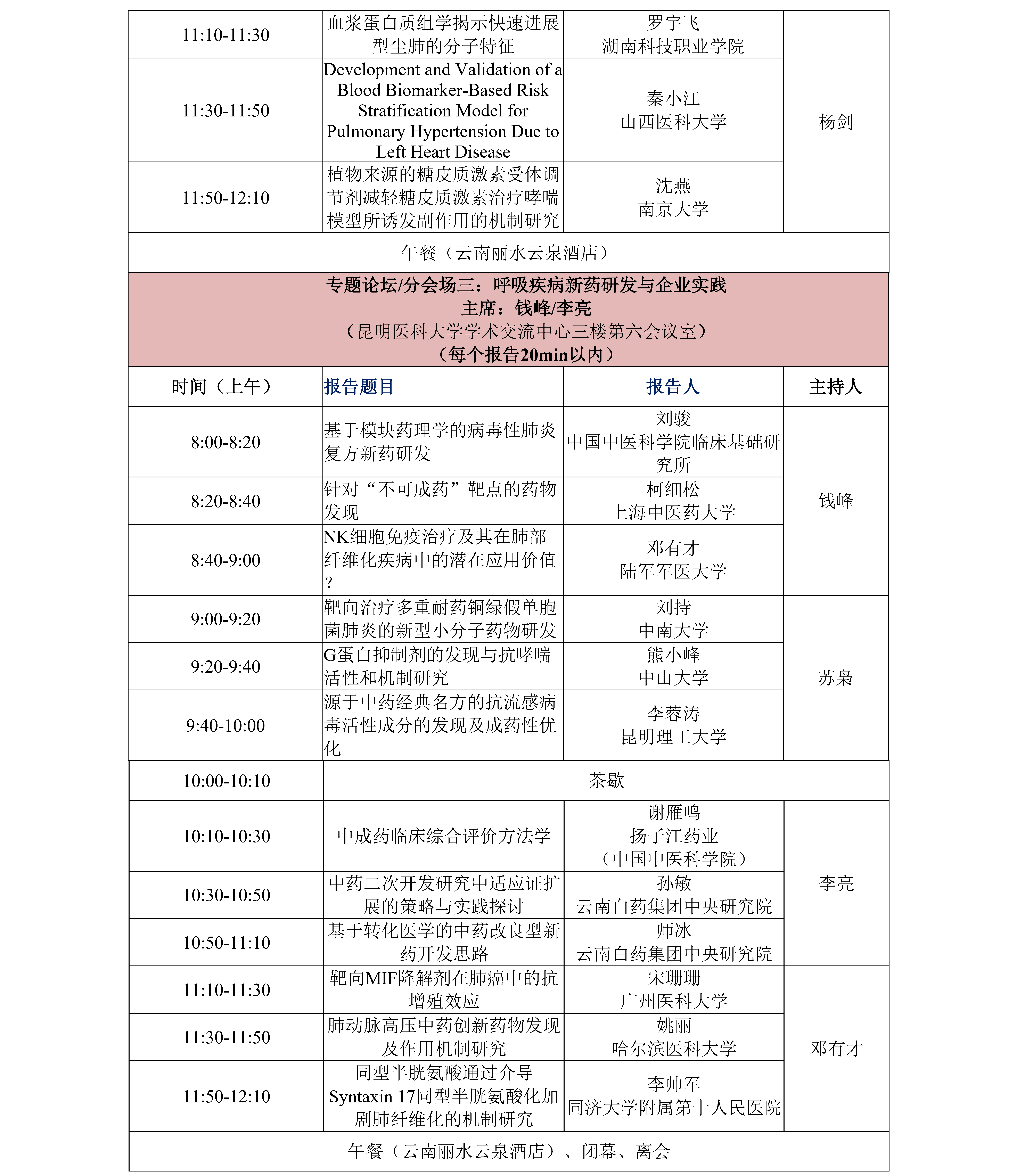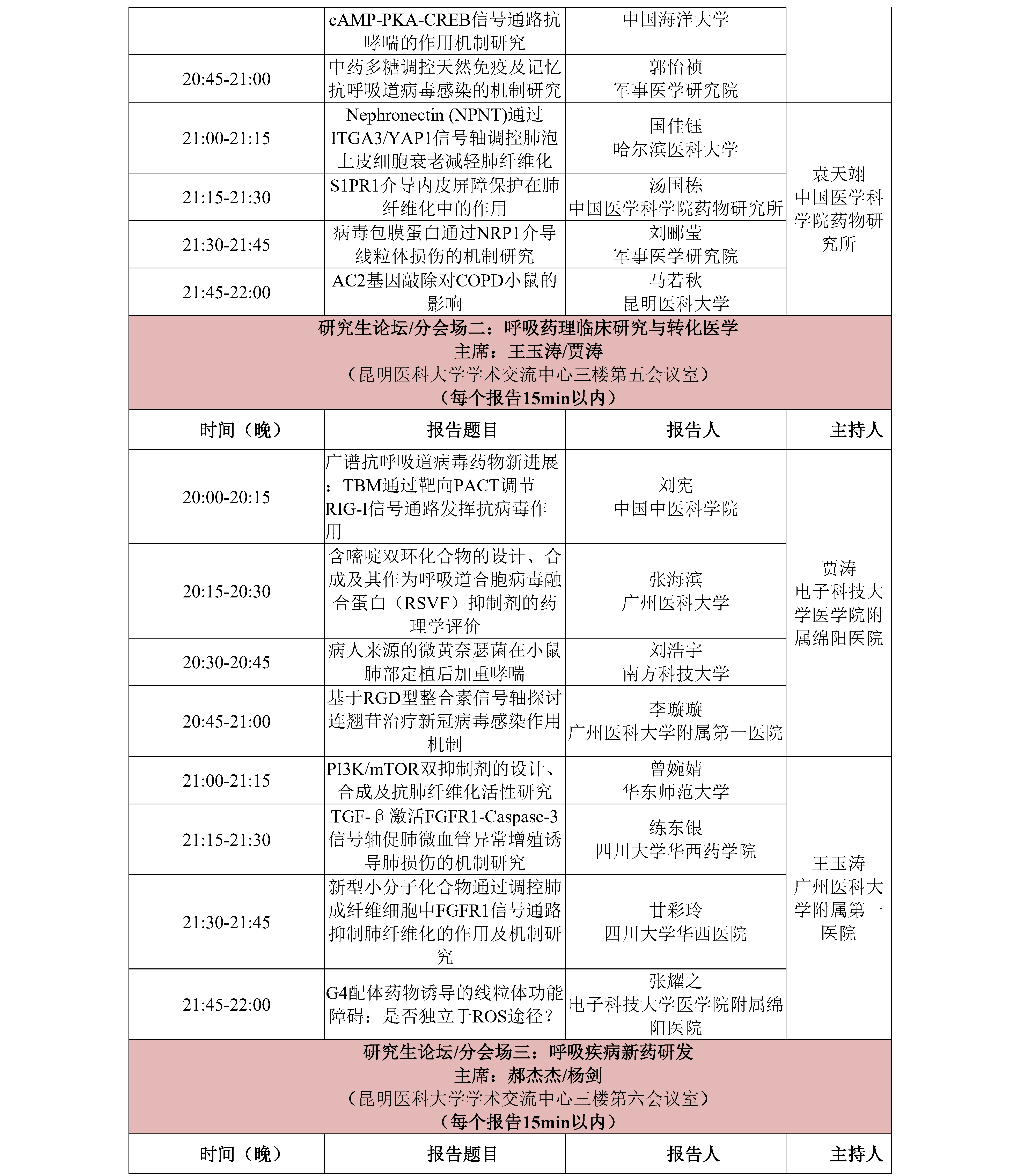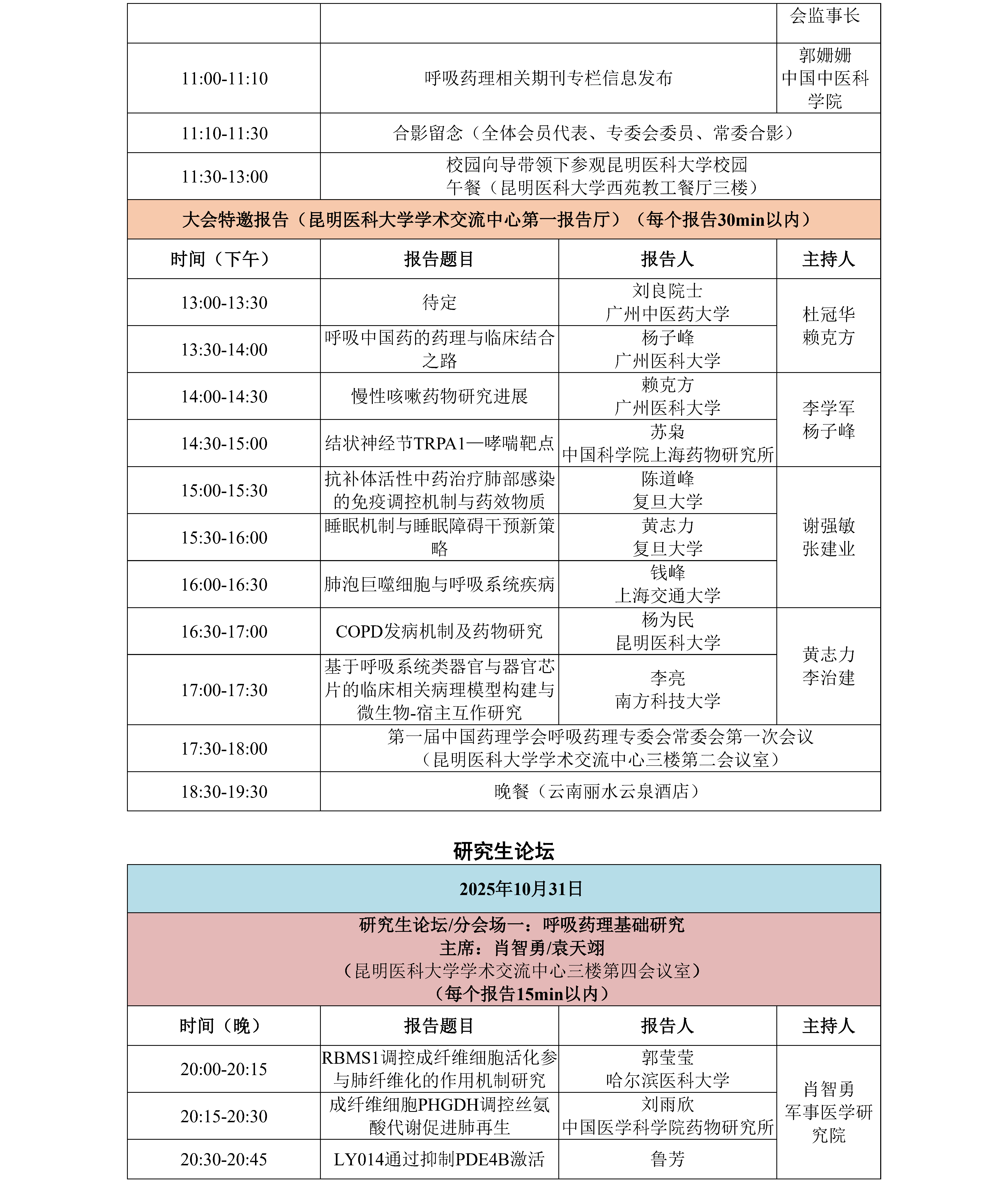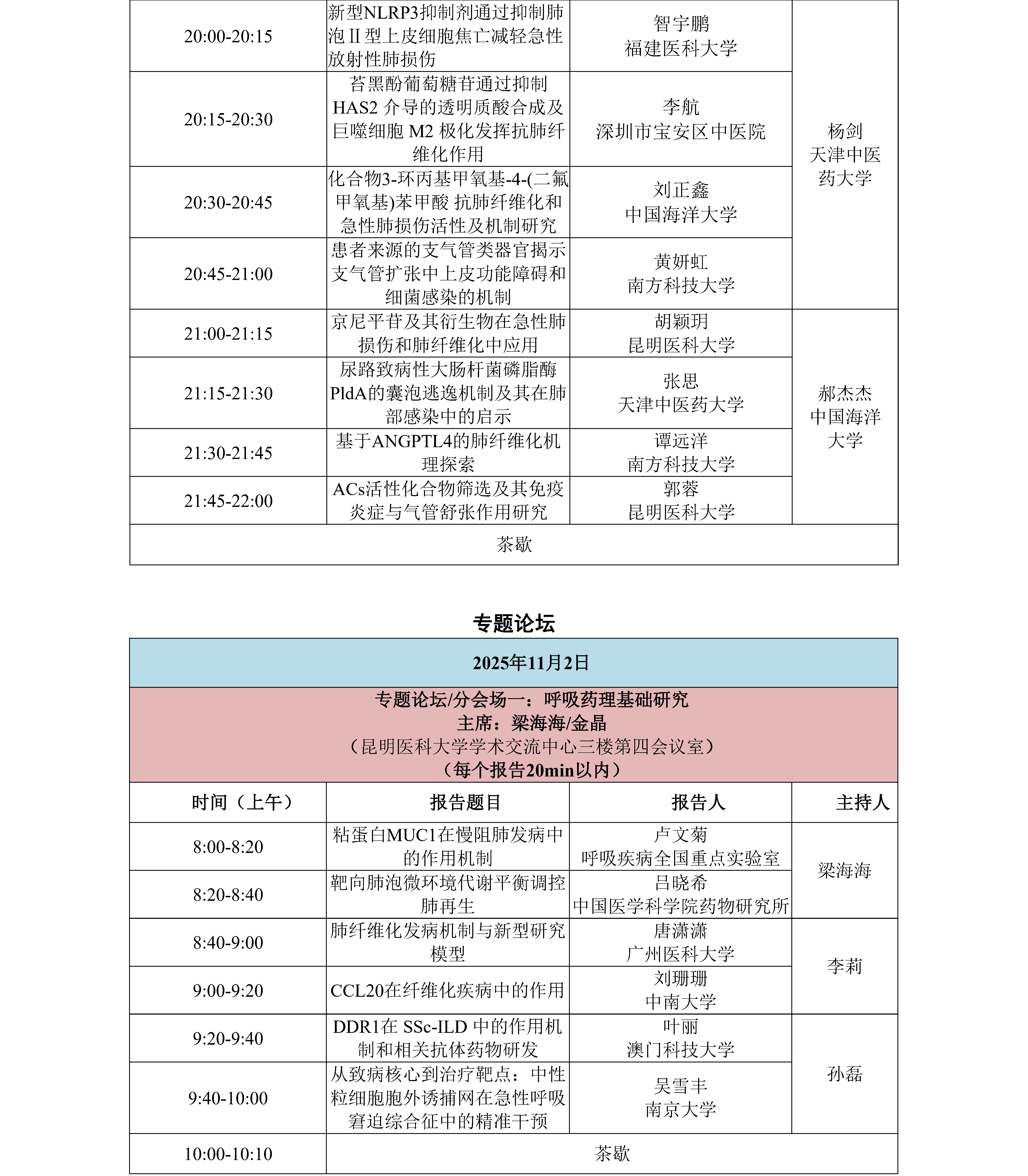 鏈浼氳璁炬湁閽堝璧勬繁瀛﹁呭強闈掑勾瀛﹁呯殑涓撻璁哄潧锛屼篃璁炬湁閽堝鍗氬+銆佺澹爺绌剁敓鐨勭爺绌剁敓璁哄潧锛屽潎璁炬湁涓変釜瀛︽湳鎶ュ憡鏂瑰悜锛屽嵆鍛煎惛鑽悊鍩虹鐮旂┒銆佸懠鍚歌嵂鐞嗕复搴婄爺绌躲佸懠鍚哥柧鐥呮柊鑽爺鍙戜笌杞寲鍖诲銆傛湁鎰忓湪鏈浼氳涓婂仛鎶ュ憡瀛﹁呮垨鐮旂┒鐢燂紝璇蜂簬2025骞10鏈20鏃ュ墠鍦ㄥ畼缃戜腑涓婁紶鈥鐢宠鎶ュ憡棰樼洰鈥骞舵敞鏄庡弬鍔犳姤鍛婄殑绫诲瀷锛屽苟闄勪笂涓汉绠浠(300瀛楀乏鍙筹紝鍚収鐗囷紝涓汉绠浠嬫ā鏉胯鏌ョ湅浼氳瀹樼綉涓祫鏂欎笅杞介〉闈㈡枃浠)銆傚鏈鍛樹細閬撮変笓棰樻姤鍛婏紝骞堕氱煡鎶ュ憡鑰呮湰浜恒
